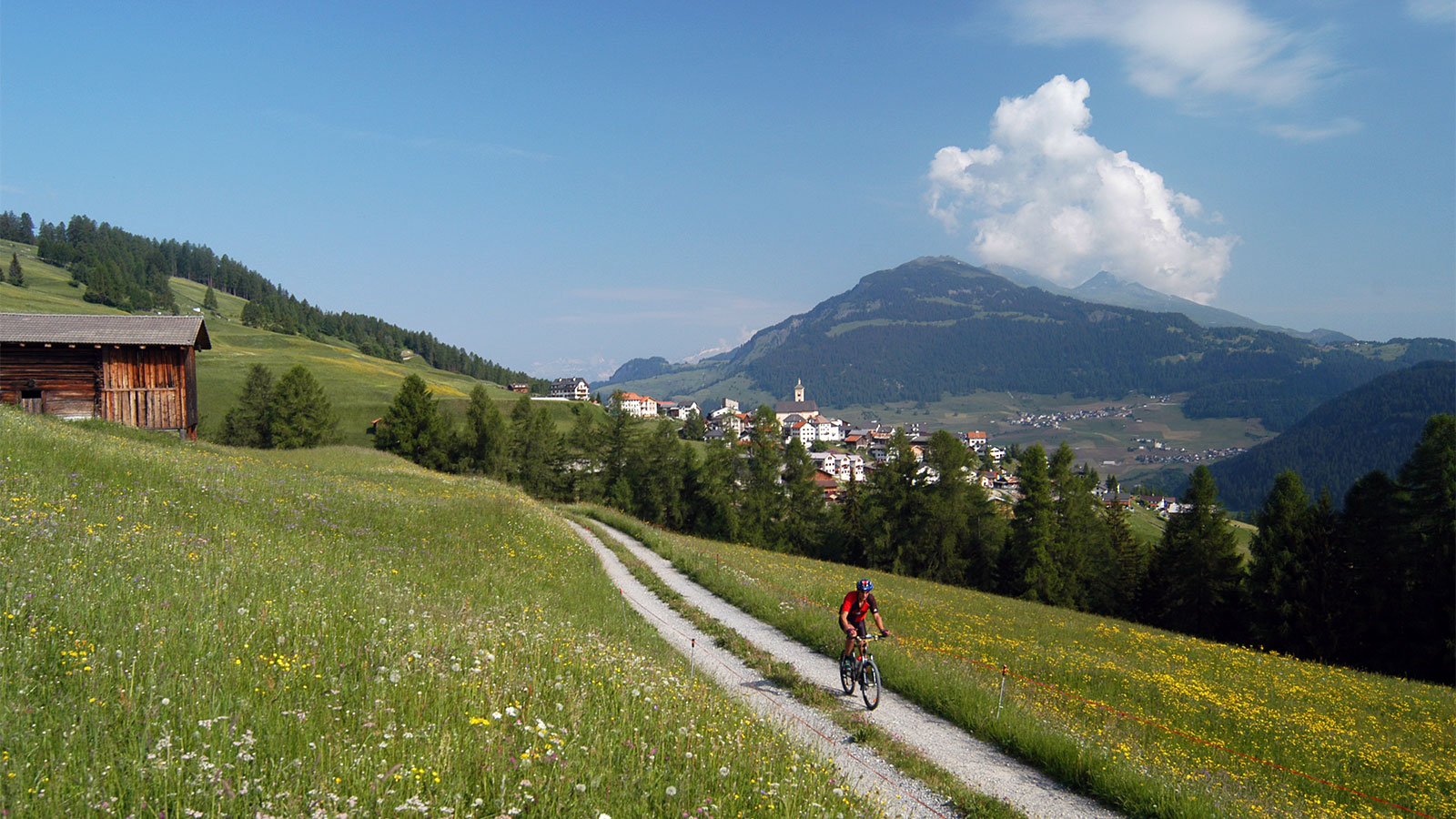 Aber wer will bei so viel Schönheit an die Anstrengung denken? Auf alten Römerwegen, Wald- und Alpstrassen geht’s durchs imposante Hochgebirge mit einzigartigen Panoramaweitblicken auf schneebedeckte Viertausender, über blühende Alpweiden hinunter in abgelegene Täler, entlang glitzernder Seen und sprudelnder Bäche, vorbei an hübschen Kapellen und idyllischen Dörfern, mal auf technisch schwierigen Trails, mal auf breiten Naturstrassen, stets das Gebimmel von Kuhglocken im Ohr und den Duft von Wiesenblumen oder Heu in der Nase.