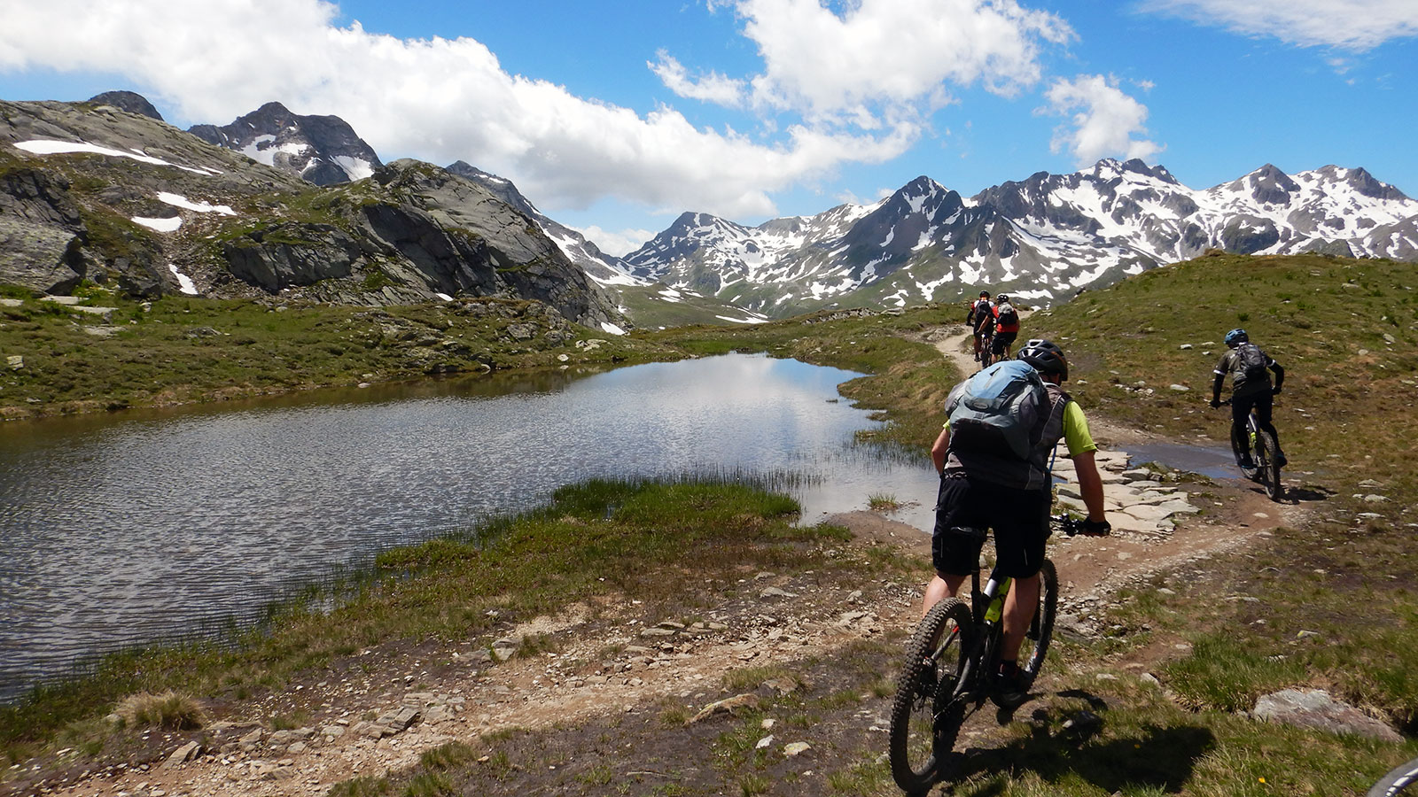 Alpine Bike ist eine fantastische Tour, für die man sich rund sechzehn Tage Zeit nehmen und einiges an Kondition und technischem Können mitbringen sollte. Unbedingt im Hochsommer fahren, mancherorts liegt lange Schnee. Auf einfachen Passagen wo’s herrlich rollt, wie im Engadin oder im Simmental, erleben auch Einsteiger und Familie das Höhengefühl der Mountainbiker.