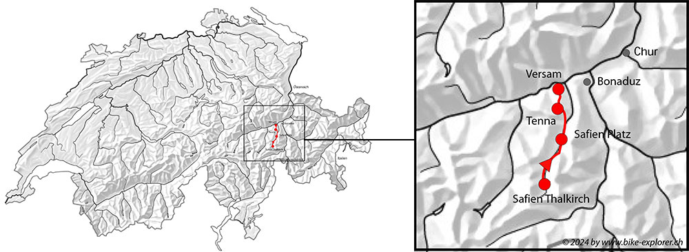 Gepäcktransport: 1 Gepäckstück pro Person, Gepäckstück max. 18 kg): Thalkirch - Safien Platz - Tenna - Versam (Gepäck-Transport ab Chur odr Bonaduz auf Anfrage)